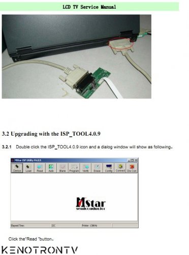 Rolsen RL-24A09105F Chassis: MST6E16JS. U41 MST6E16, U22 TDQ-6F6/T126CW, TPA1517 SMPS Shemes for TLM22V08 24V87P Service manual По 24A09105F , сервис мануал и прошивка, Прошить можно ISP_Tool через шнурок, панель в этой модели была только одного типа. Для входа в меню Заводские OSD . С завода RC (с дистанционным управлением) 1. Нажмите кнопку «М» и введите технологическом режиме. 2. Нажмите кнопку «Меню» и введите заводе экранного меню. 3. Нажмите кнопку "CH +" / "CH-" кнопки выбора функции меню нажмите "VOL +" / "VOL-" введите выбранной функции меню. Нажмите кнопку "VOL +" / "VOL-" кнопки регулировки параметров меню. 4. Нажмите кнопку «М» выход технологическом режиме на заводе экранного меню. Когда телевизор исходящих завод, пользователь не может войти завод экранное меню с завод удаленного б. С RC пользователя 1. Power TV On 2. Нажмите кнопку Меню и вызовите Меню OSD 3. Выберите Звук-> Весы 4. Когда баланс имеет значение "0", введите 0 -> 5 -> 3 -> 2 или 1 -> 9 -> 6 -> 9 в определенной последовательности. Примечание: При необходимости, повторно делать цифровые клавиши. 5. Фабрика экранного меню. 6. Нажмите кнопку режима ожидания, то AC Выключите и снова включите телевизор, который может выйти из завода OSD меню. Обновление документа Для входа в сервисное меню нажмите кнопки: MENU 7 1 0 или MENU 1 1 4 7 1W045009_A-13010_39M3F_TP.VST59.P83_20130425-120846_V390HJ1-L02_8 7W_ROLSEN_FY-CY58E прошивка 29 to 39 inch diagram TP.VST59.P83-65W40.pdf TP.VST59.P83 Trouble Shooting_.pdf Что нового в этой версии Service Manual (Посмотреть все изменения) Liquid Crystal Display Television Service Manual Chassis: MST6E16JS Product Type;LCD19V87/LCD22V87 Ver 1.0