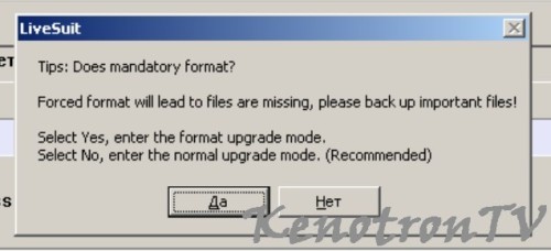В окне программы «LiveSuit» нажимаем кнопку для выбора файла обновления, находящегося в распакованном архиве под названием «TF-MID9701G.img»