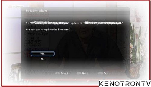 2) Нажмите кнопку "ENTER", выберете "YES" для обновления системы (для того, чтобы выбрать "NO" – управление осуществляется стрелками на пульте дистанционного управления). Обновление будет выглядеть так (см. рисунок ниже). (ВНИМАНИЕ: пожалуйста, не отключайте питание, так как произойдет сбой обновления)