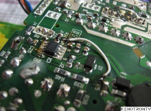 Резистор (R18 91ком) отпаять от GND и подключить к R5 -вывод обмотки подпитки питания шим. 7 и 8 выводы оставить NC.
