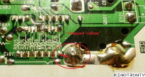 Дома при хорошем освещении шасси было проверено на качество паек, и выявлен дефект .